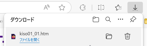 2.ダウンロード操作を行うとブラウザにダウンロードの表示が出る 3.フォルダーのアイコンをクリックしダウンロードしたファイルを確認する